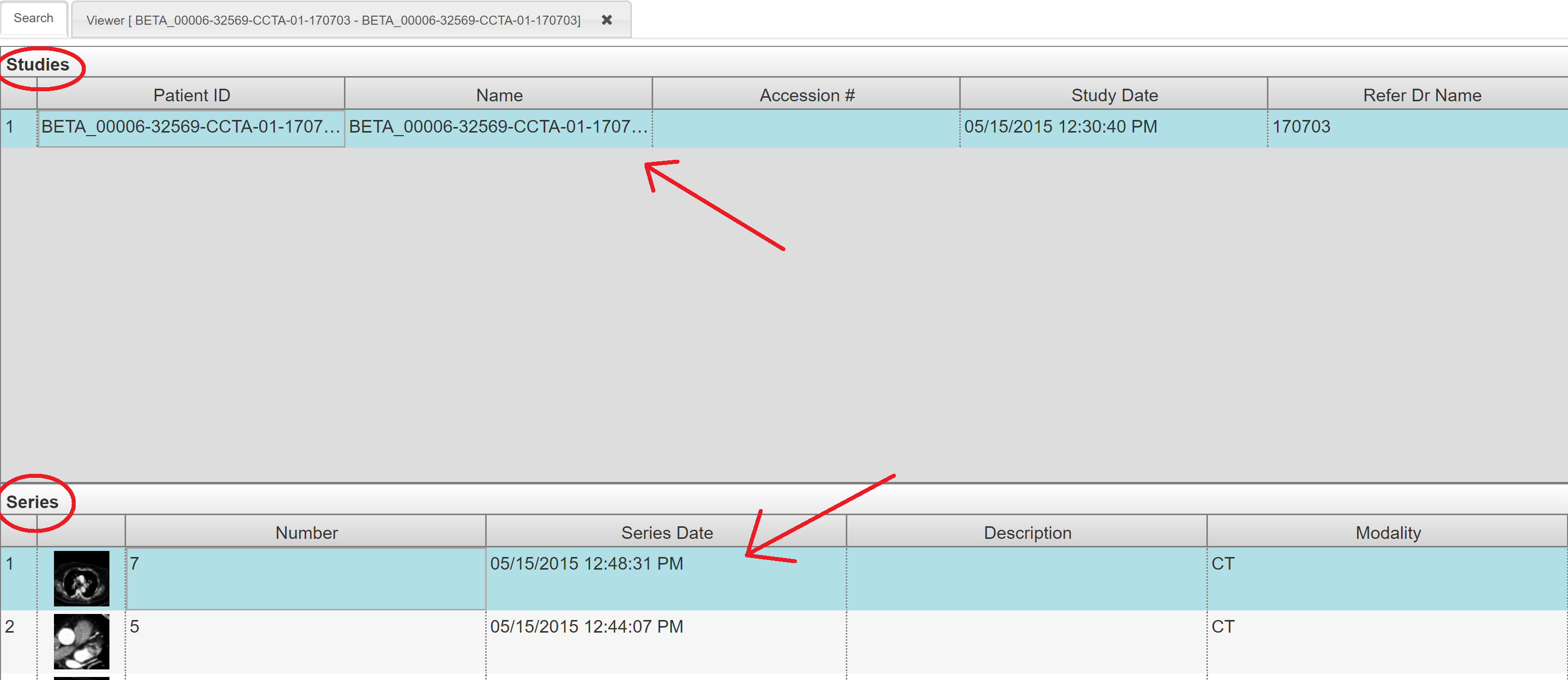 - Once it loads, select a Study. Then, select a Series within the Study.