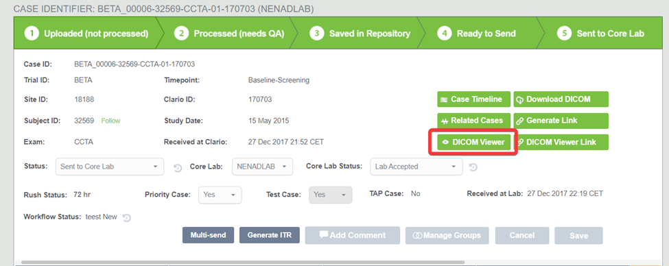 - Click the "DICOM Viewer" button, located in the right-side of the case details summary region.